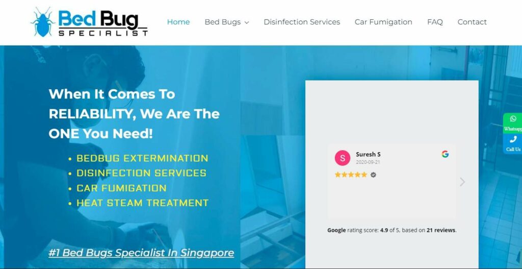 Bed Bug Specialist is the number 1 bed bug extermination service in Singapore. Certified by the National Environment Agency (NEA), this company has been slowly getting the trust of Singaporean households.