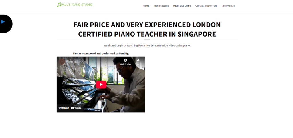 Paul’s Piano Studio is a premier destination for piano education in Singapore. It is led by a truly passionate and exceptionally experienced instructor.
