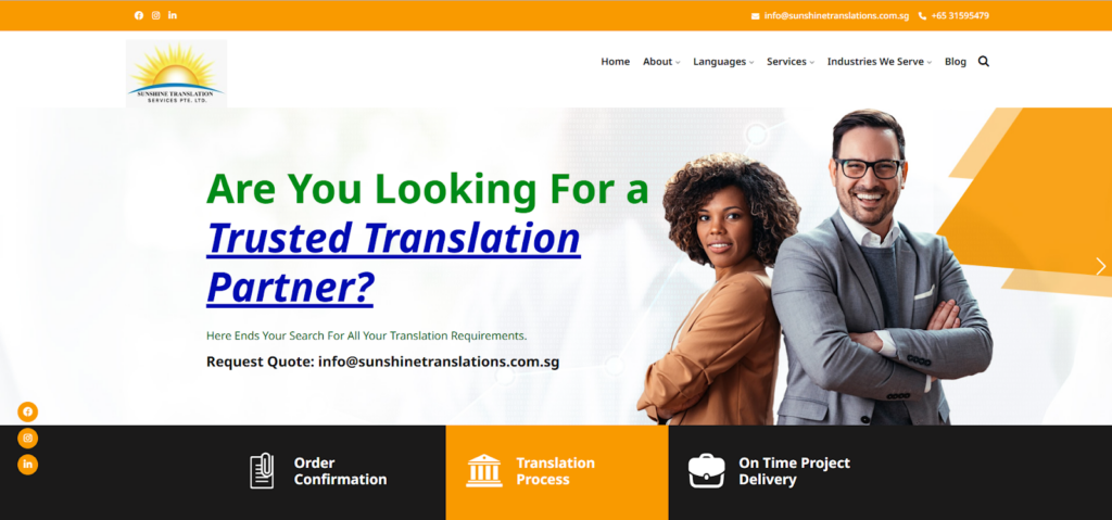 Sunshine Translation Services is a trusted translation provider based in Singapore, dedicated to connecting people and businesses across languages. They focus on delivering professional, accurate, and culturally sensitive translations.